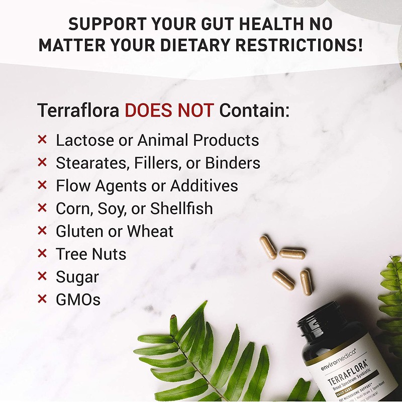 Terraflora Daily Care synbiotic of probiotics and prebiotics for women and men 60 ct, soil based, shelf stable, allergen friendly spore based supplement capsules promote gut health by Enviromedica