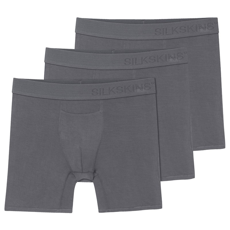 Terramar Men's Silkskins 6" Boxer Briefs 3-Pack Underwear, Grey, Medium