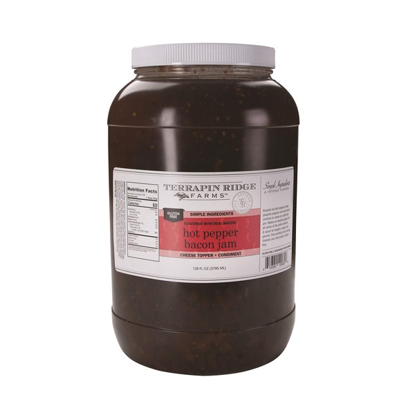 Terrapin Ridge Farms Hot Pepper Bacon Jam – Sweet & Spicy Spread with Real Bacon & Jalapeño – Gourmet Condiment for Cheese, Meats, and Appetizers – One Gallon