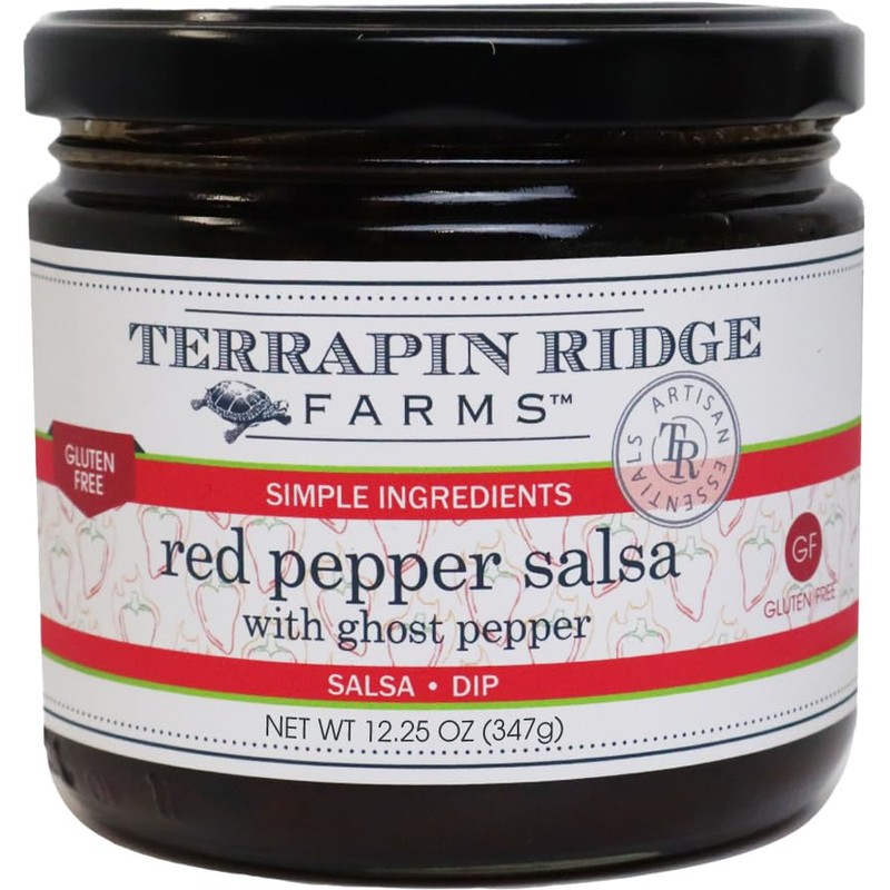Terrapin Ridge Farms Red Pepper Salsa with Ghost Pepper – Sweet & Smoky Gourmet Dip and Glaze – Gluten Free, 12.25 oz Jar