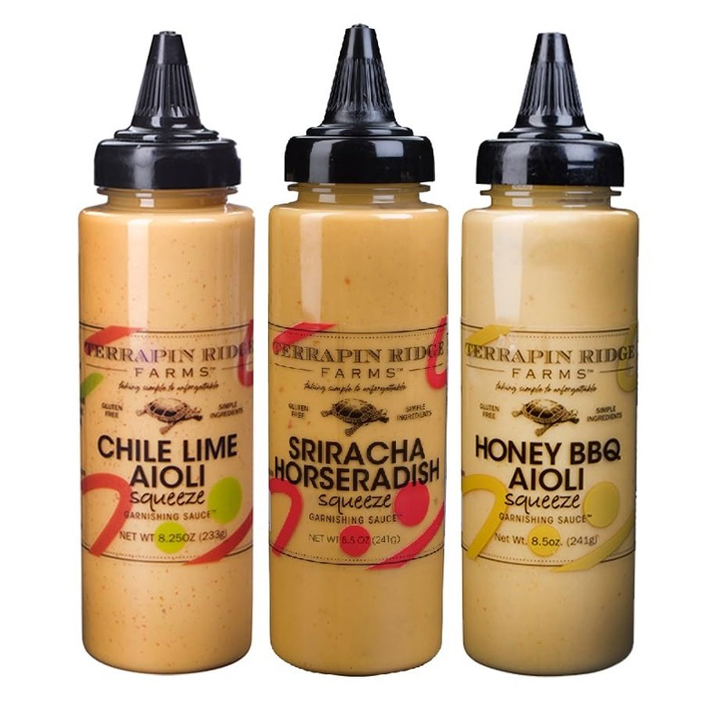 Terrapin Ridge Farms Squeeze Favorites Set – 1 Each of Chile Lime Aioli, Sriracha Horseradish, and Honey BBQ Aioli (Set of 3)