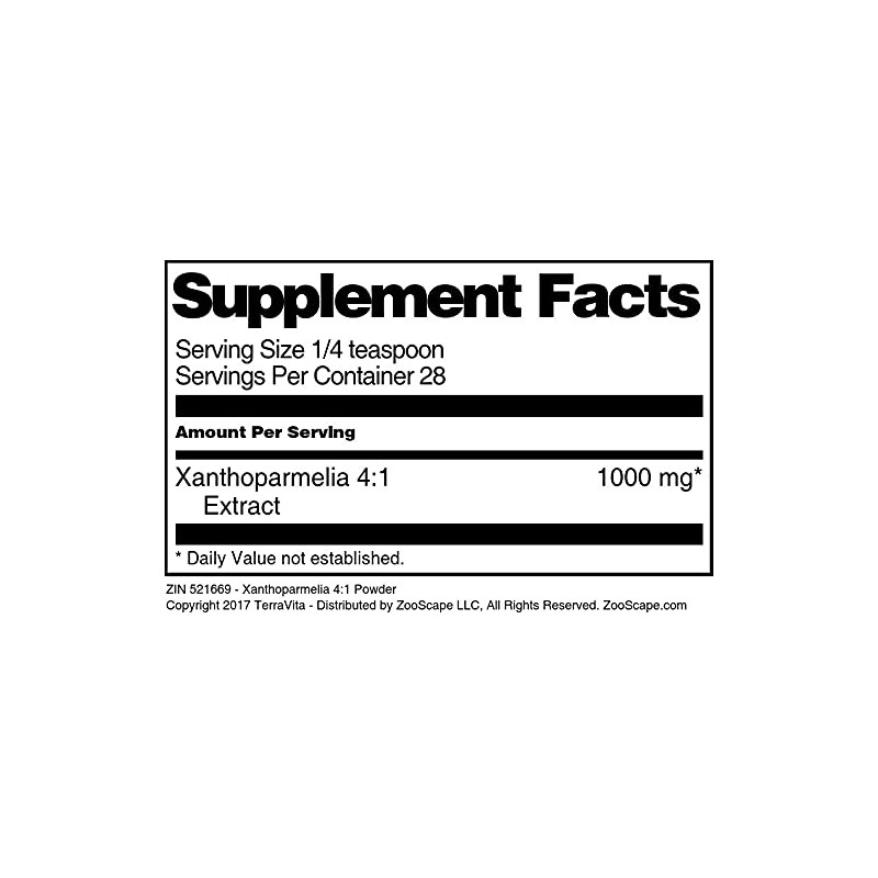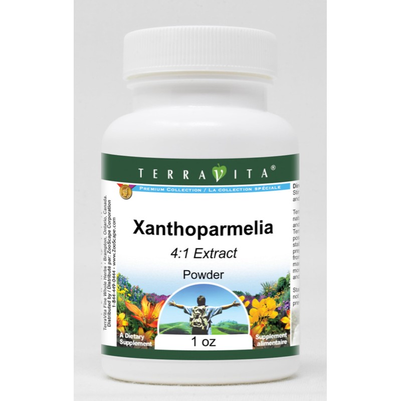 Xanthoparmelia 4:1 Powder (1 oz, ZIN: 521669)Packaged in the United States in a GMP certified facility (Good Manufacturing Practice).No fillers.Manufacturer: TerraVitaSize: 1 ozConvenient Powder format.Ingredients: Xanthoparmelia 4:1 Extract