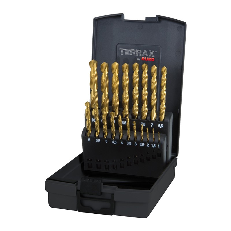 Terrax by Ruko A250214TRO Twist Drill Bit Set DIN 338 Type N HSS-G TiN in Plastic Case