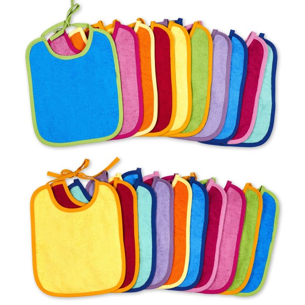 Terry Tie-On Bibs 25 x 30 cm, Assorted Colours, 20 Pieces