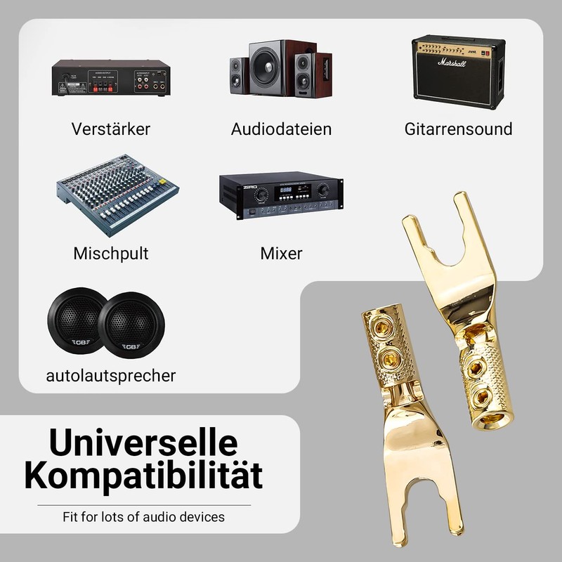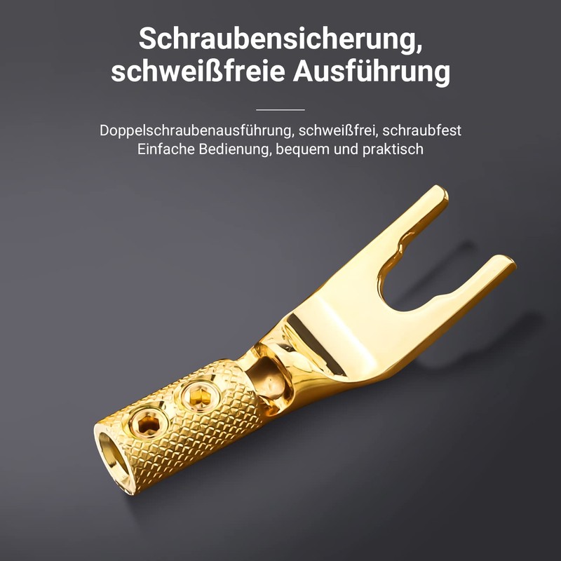 Tertullus Pack of 8 Pure Copper Gold-Plated Screws Speaker Cable Lug Fork Clamps U Connector for HiFi System Amplifier / Speaker Cable up to 4.5 mm