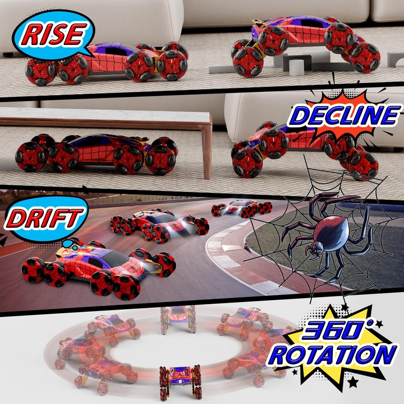 - 🚙【Powerful Rotating Arm - Dazzling Functions】The new technology can control the tire arm individually, and the remote control car can easily achieve stunts such as 360° rotation, circling, drifting, crawling and double-sided driving. Raise or lower the swing arm to change the drift and rotation posture. Come and unlock your own walking posture.