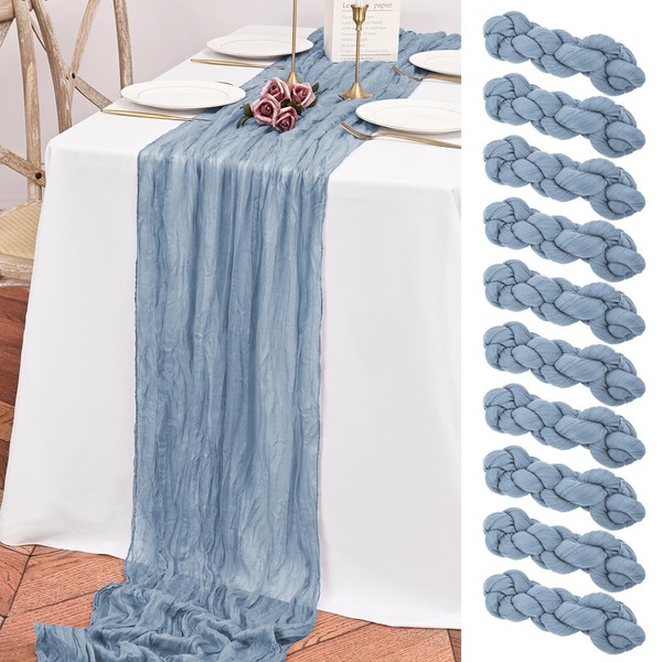 Teruntrue 10 Pack Blue Table Runner Cheesecloth Table Runner, 10FT Long Boho Table Runner Gauze Table Runner for Birthday Party Festival Wedding Decoration (Blue)
