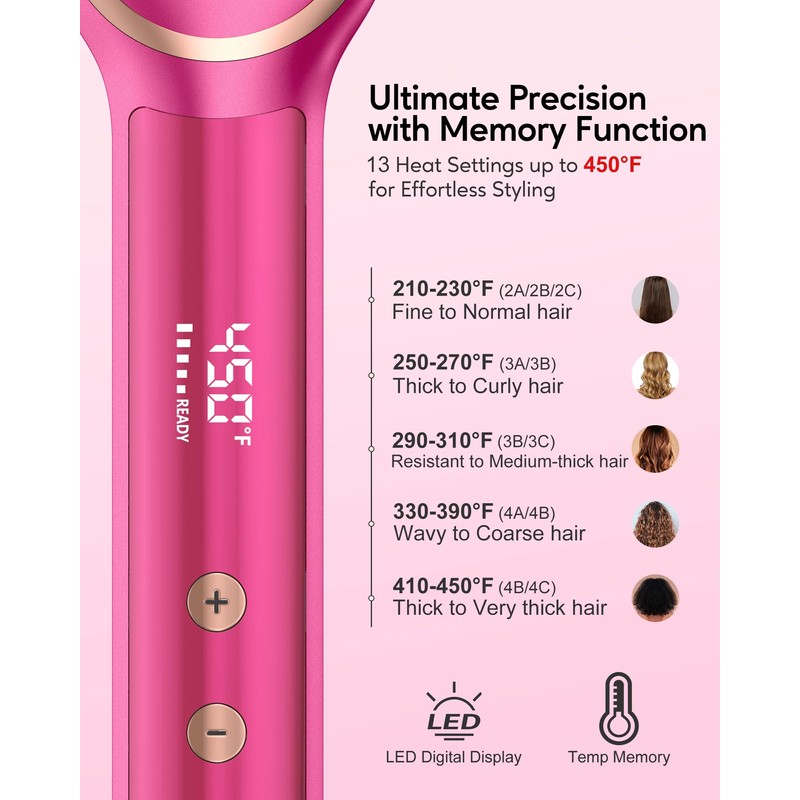 - Multiple Temperature Settings & Digital Display:Terviiix hair straightener brush offers temperatures ranging from F to F, find the ideal temperature to suit your texture preferences. The digital display design allows you to monitor the temperature in real-time, ensuring the safety and precision of the flat iron comb for optimal styling results