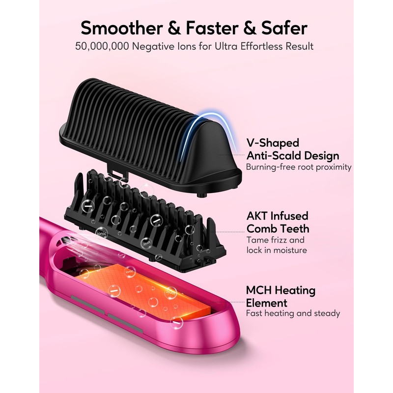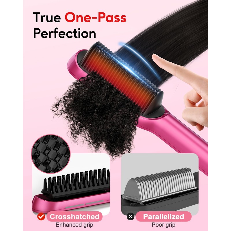 Terviiix Terviiix Frizz Buster Ionic Hair Straightener Brush with MCH Heater - Rapid 450F in 20S, Hair Straightener Comb for Efficient One-Pass, Anti-Scald, 13 Heat Settings, Dual Voltage, Pink