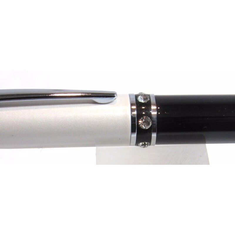 TERZETTI Diamond ROLLERBALL Pen-BLACK BODY/WHITE CAP METAL BODY+POUCH+GIF