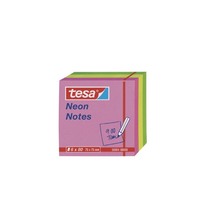 tesa Notes Sticky Notes 6 x 80 Sheets Green / Yellow / Pink 7.5 cm x 7.5 cm