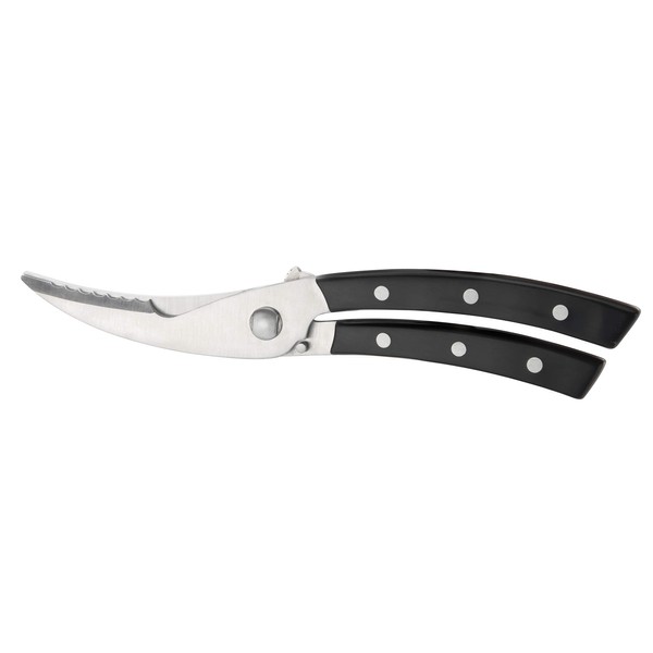 - AZZA - Solid poultry shears with a special serrated edge cutting of thick bones for easy patterns and a sharp tip for shearing skin. Made of high quality stainless steel, with ergonomic handle and a safety lock. 10 year warranty.