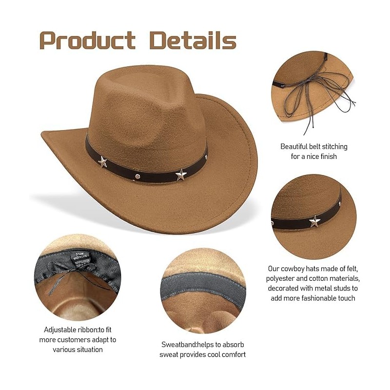 - Material: Made of 65% cotton, 35% polyester.Cowboy hat for women and men, felt cowgirl hat for adults, western party dress up accessories