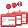 Teskyer 3 Pack Retractable Badge Holder, Retractable Keychain, ID Badge Holder, with 1 Clear Window, Hold 1 Card, for Office, Business, Red