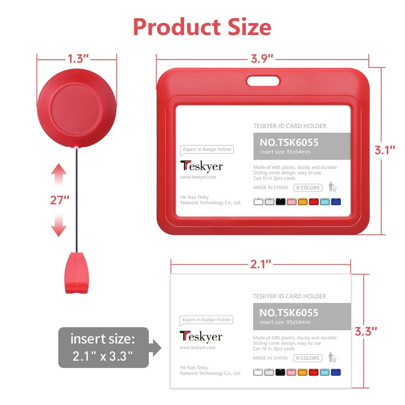 The badge holder measures 3.3 x 2.1 inch/8.5 x 5.4 cm, and the retractable lanyard can be extended up to 28.7 inch/73 cm.