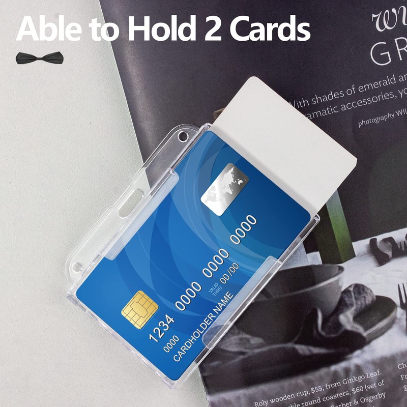 This id badge holder can be paired with a lanyard or a retractable badge clip, with a thumb groove in the middle, you can easily take out the cards, each can hold 2 cards, which is very suitable for passes, bus cards, and work cards.