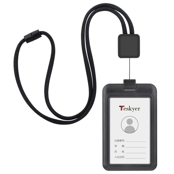 Teskyer ID Card Holder Name Holder Lanyard Business Card Holder Safety Breakaway Buckle Employee ID Card Case Hard Pass Case with Reel Retractable for Men Women Employees Teachers Employees (Black