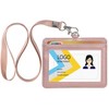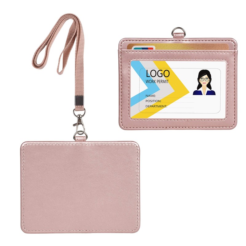 Teskyer ID Card Holder, Pass Case, Neck Strap, PU Leather, Name Card Case, Employee ID Card Holder, Business Card Holder, School (Horizontal Rose Gold)