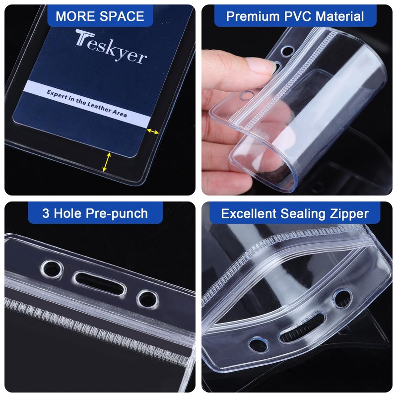 Teskyer Pack of 10 Clear Plastic ID Card Holder with Resealable Zipper Waterproof Soft Vertical