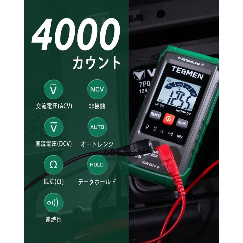 - High Performance Digital Multimeter: The TESMEN TM-510 4,000 count smart digital multimeter allows you to quickly switch between all measurement tasks such as AC / DC voltage, resistance (Ω) and conductivity without choosing any mode or range. This allows you to perform tasks easier, faster and accurately