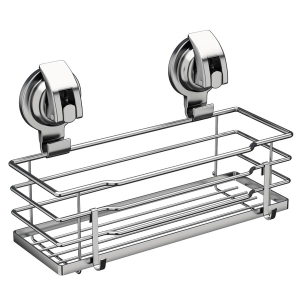 TESOT Suction Cup Shower Caddy, Shower Shelf Soap Dish with Hooks for Razor, Sponge, Rust Proof 304 Stainless Steel, Silver
