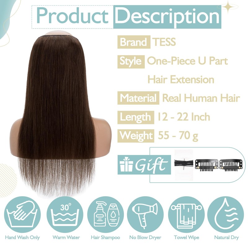 - 【Attention】All photos of Clips in Hair Extension are taken by TESS. Due to differences in screen and light, there may be slight differences in colour. These hair pieces for women can be effortlessly maintained with hair oil, providing you with beautiful results that last.