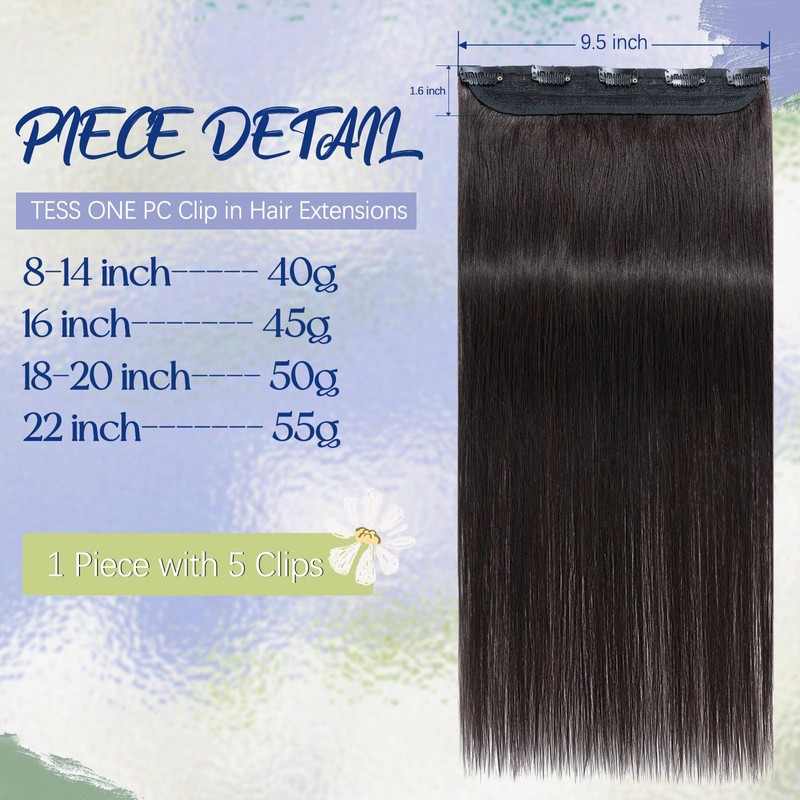 TESS Clip In Hair Extension,Hair Extensions Real Human Hair One Peice 5 Clips Straight Natural Hairpieces for Womens/Girls(#1B Natural Black,18Inch)