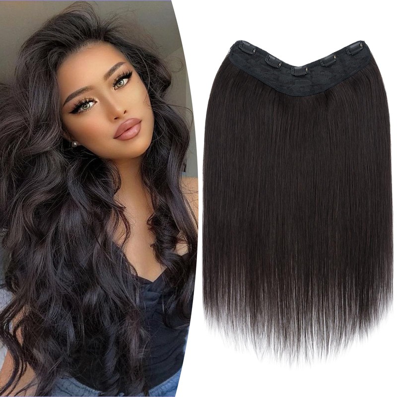 TESS Clip-In Real Hair Extensions, Black, 30 cm, One Piece U-Shaped Clip-In Real Hair Extensions, 5 Clips, Remy Hair Extensions, 55 g, #1B Natural Black Extensions Clip-In Real Hair
