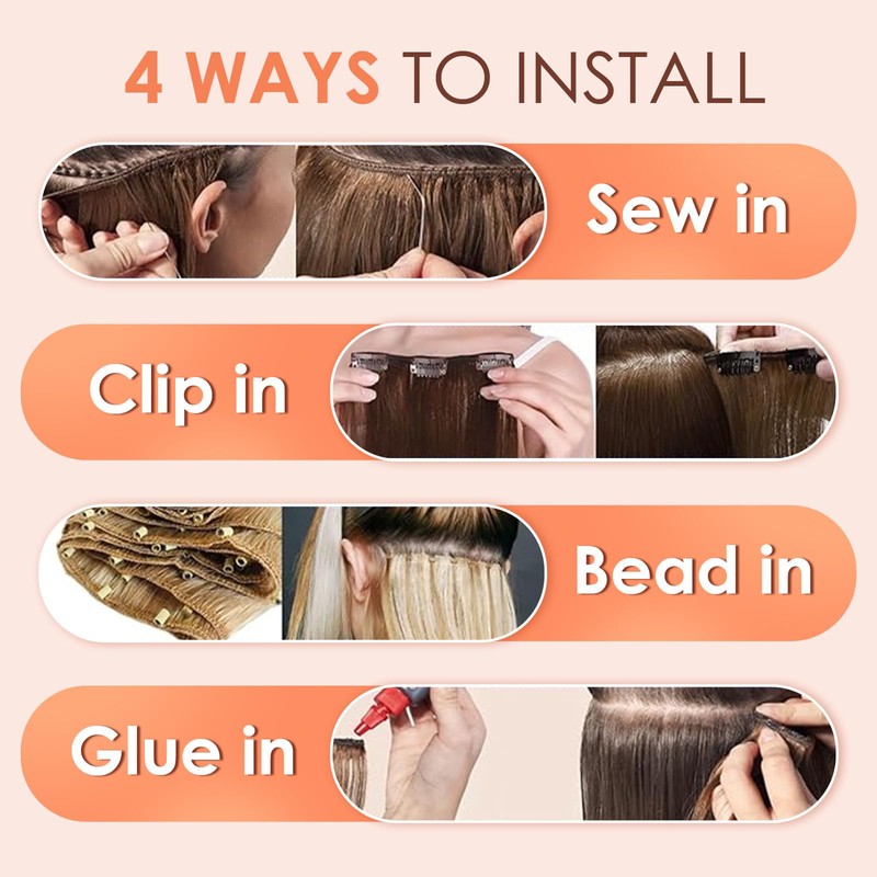 - 【Professional processing】TESS weft hair extenisons use advanced processing technology to ensure the health of each strand of hair weft, maintain the gloss and elasticity of the hair, so that each weft extensions can show the better state