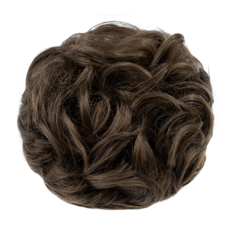 TESS Hairpiece with Elastic Band, 55 g, Curly Hair Scrunchie with Hair, Ash Brown, Large Bun Hairpiece, Synthetic Hair Extension for Women and Girls