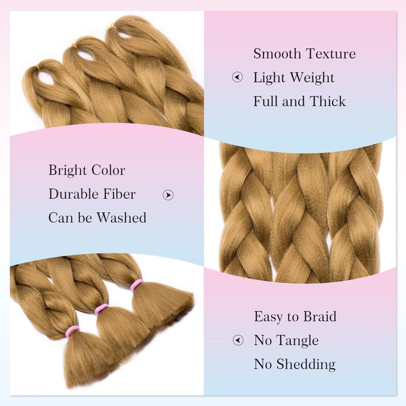 Tess Jumbo Braids, Hair Extensions, 60 cm, Kanekalon Synthetic Hair for Braiding, Box Braids, 100 g/Bundle, Pack of 5, Honey Blonde