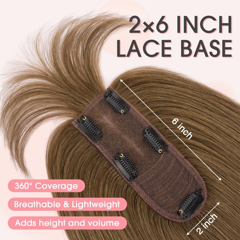 - 【5 Anti-slip Clips】Equipped with 5 anti-slip clips, this topper stays firmly in place all day. The upgraded clip design ensures a secure and comfortable fit, even on thin hairlines.