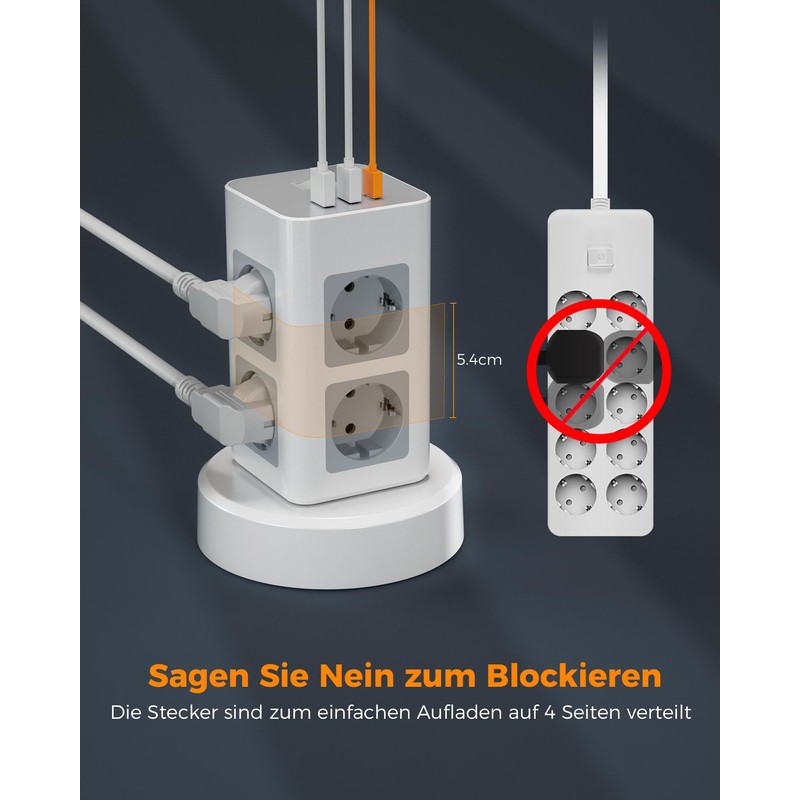 - 8 Fach steckdosenleiste mit USB: Die mehrfachsteckdose mit 8 steckdosen sind vertikal auf den 4 Flächen, platz sparen als normale mehrfachstecker. Steckdosenleisten mit 2 USB und 1 USB C deckt den Ladebedarf Ihres ab für zuhause büro