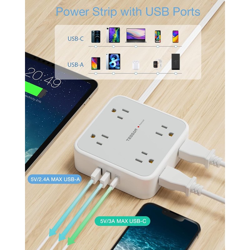 - Multicontacto USB C: Los puertos duales USB A pueden cargar hasta 2.4 A, y el puerto USB C puede cargar hasta 3 A; Ideal para teléfono celular, tablet, banco de energía, portátil, auricular, etc; Nota: todos los puertos USB de salida: 5 V/3 A, 15 W max