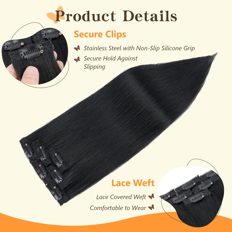 - 【Comfortable & Breathable】The ultra-thin lace design ensures all-day comfort, eliminating any suffocating feeling on the scalp. These human hair clip-ins provide a lightweight and pleasant wearing experience.If you love styling your hair—whether straightening, curling, or creating various looks—human hair extensions are the ideal choice. Not only are they easy to apply, but they also offer a high-end salon effect at a fraction of the cost