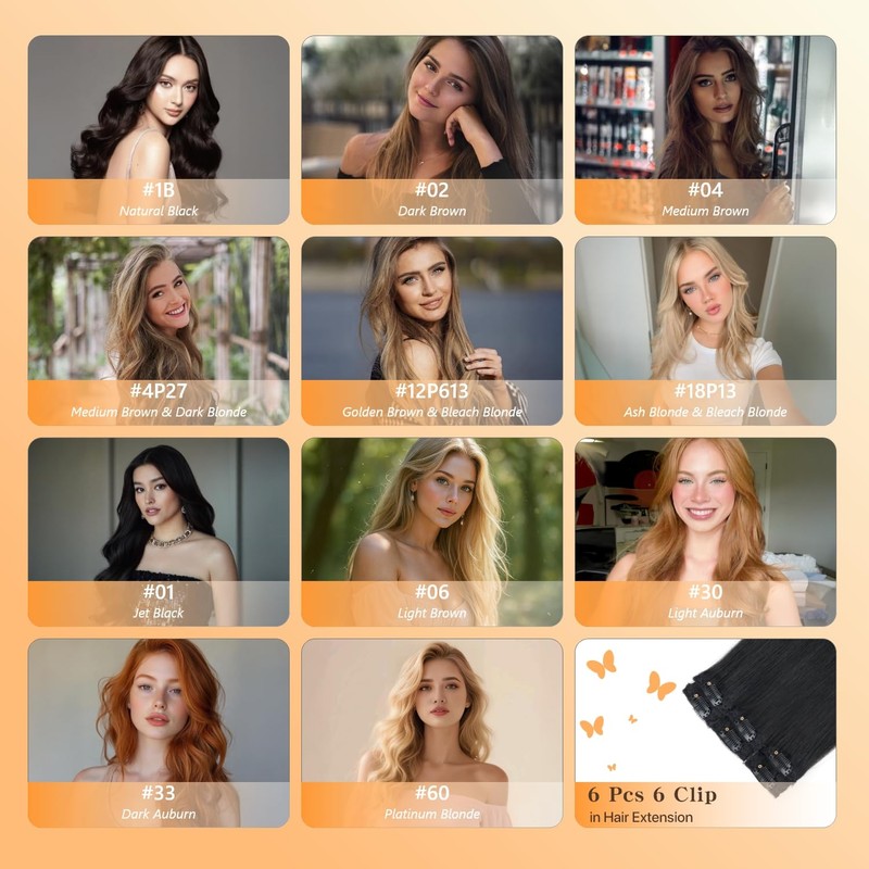 - 【6Pcs Human Hair Clip in Extensions】tesshair human clips In extensions include 6 pieces per set, weighing 31–47g with 6 secure clips each. They’re lightweight and effortless to wear, offering a natural, comfortable fit.We provide a wide range of colors and sizes to match your unique style. Need help choosing the perfect shade or length