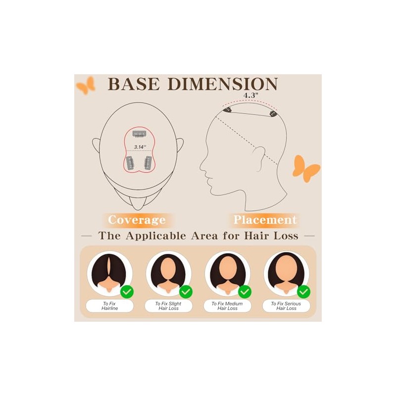 - Salon Quality: Hair topper for women is made from 100% remy human Hair, which can be washed/dried and heat styled with very little damage. Human hair topper are lighter, more invisible and more natural than synthetic hair topper. It will blend perfectly with your hair, giving beautiful fullness and length for your thin hair. Hair topper is smooth as feathers and weighs only 21 grams, which won't put any burden on your head.