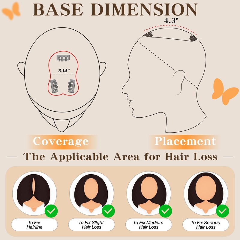 - Time-Saving: Easy to wear, it can be put on in just a few seconds with a simple place and press, making the attachment process complete. Not only does hair topper with bangs save you time in the morning and during weekends, but it also naturally blends with your own hair, becoming almost undetectable even upon close inspection. No one will be able to uncover your secret.