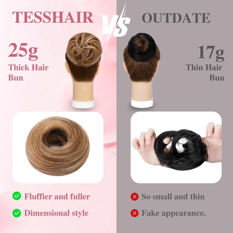 - 【Scrunchie Specifications】tesshair 1 pcs bun hair piece human hair, bun hair weight: 25g/pcs. Tip: Considering the lighting and different monitors, the hair bun of color may be slightly different from the displayed picture.