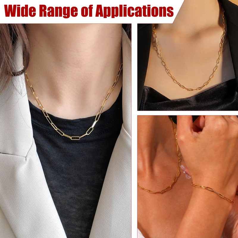 - Wide range of applications: paper clip chains can not only be used to repair necklaces, but also for making all kinds of jewellery such as necklaces, earrings, brooches, key rings, tiaras and all other jewellery with chain elements. Paper clip chains are perfect for various occasions such as weddings, daily life, office work, Christmas parties, etc. It is a meaningful gift for your friends and family.