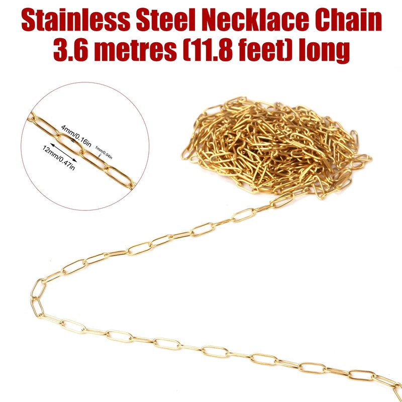 - Product size: you will receive a 3.6 m long stainless steel paper clip chain gold colour, the wire diameter of the stainless steel paper clip chains gold is 1.0 mm, the width of the stainless steel paper clip chains gold is 4 mm, and the length is 12 mm. Beautiful DIY paper clip chain set is perfect for DIY handmade jewellery, and there are enough of them to meet your daily use.