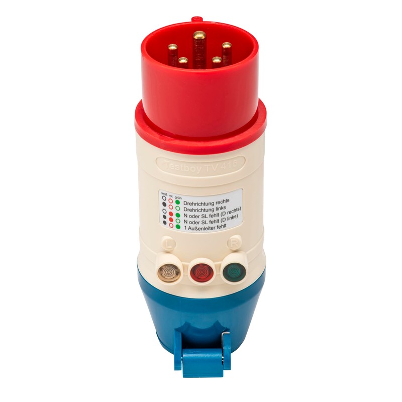 - Box contents: Testboy TV 416 CEE adapter with rotating field direction display - unbreakable PE housing - can be combined with Testavit Schuki 1A, 2K and 3A - rotary field direction indicator - colour: red/white/blue