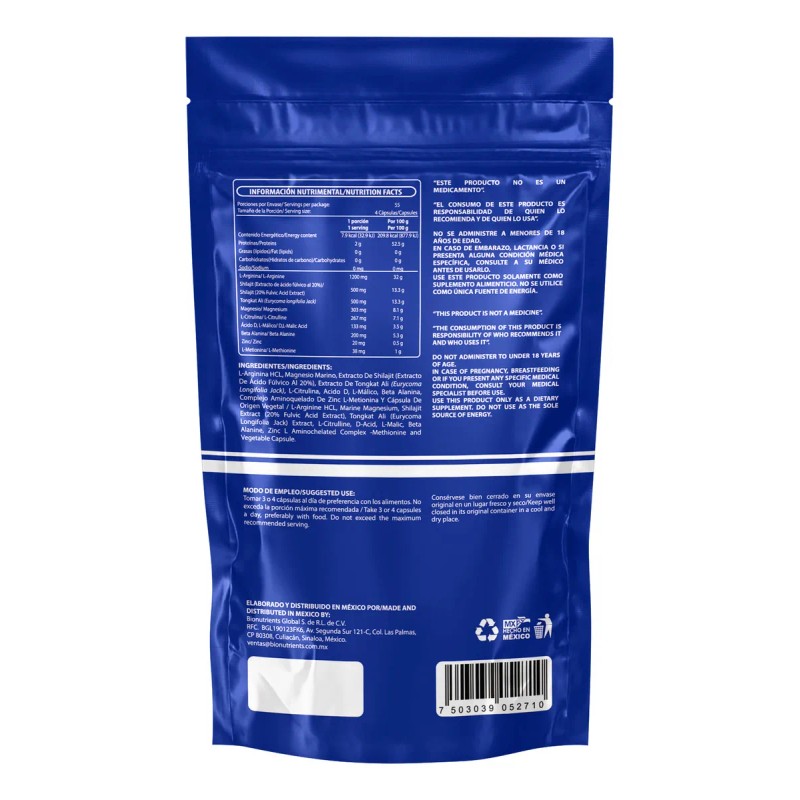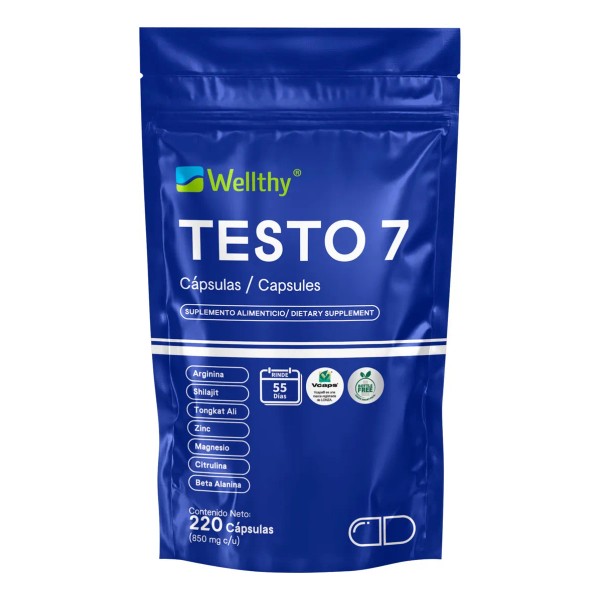 Testo 7 con L-Arginina Wellthy Pouch de 220 Cápsulas Sin Sabor