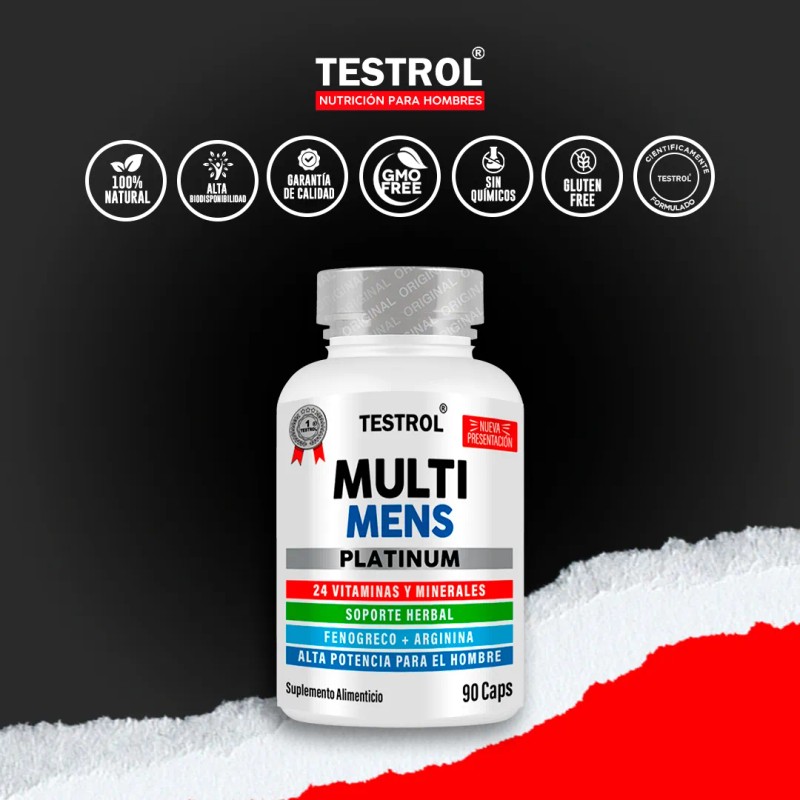 Testrol Multi Mens Platinum | 24 Vitaminas Esenciales para el Bienestar Masculino | 90 Cápsulas