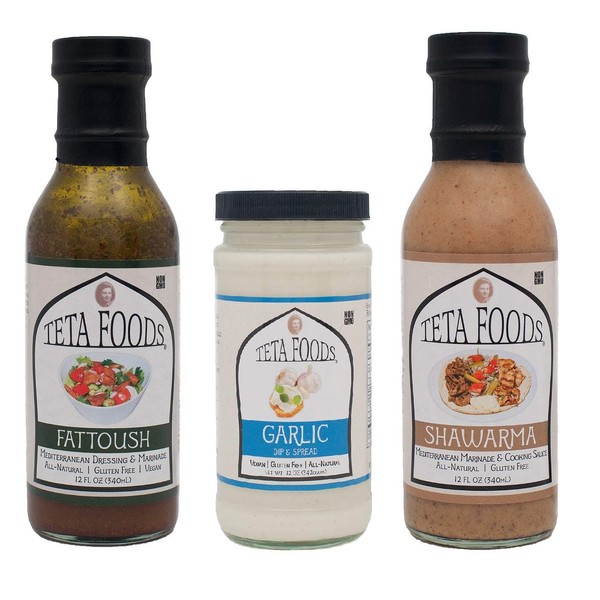 Teta Foods Garlic Dip & Spread, Shawarma Marinade, and Fattoush