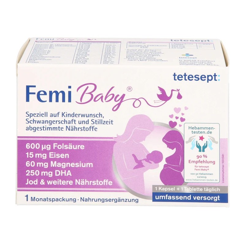 tetesept Femi Baby Kapseln + Tabletten bei Kinderwunsch, Schwangerschaft und Stillzeit, 60 pcs. Combipack