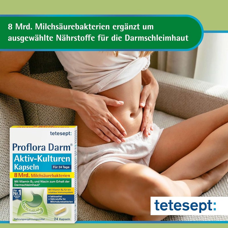 - Lieferumfang: tetesept Proflora Darm Akiv-Kulturen Kapseln, 4 x 24 Stück, mit Vitamin B2 und B6, Niacin und Folsäure, gluten- und laktosefrei