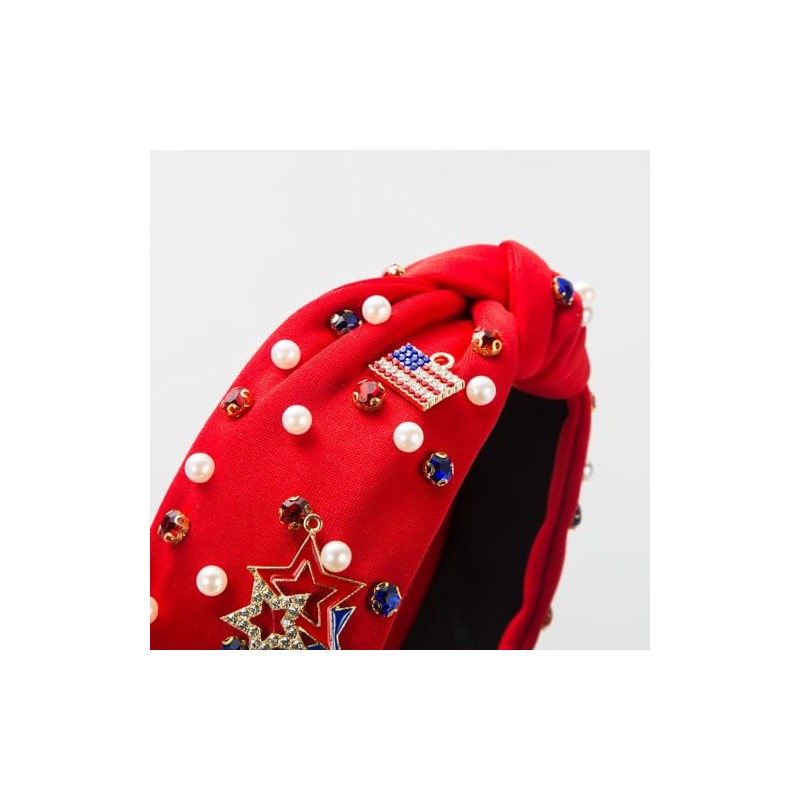 TETING GINING Independence Day Star American Flag Crystal Pearl 4th July Patriotic Headbands for Women (Red, Medium)