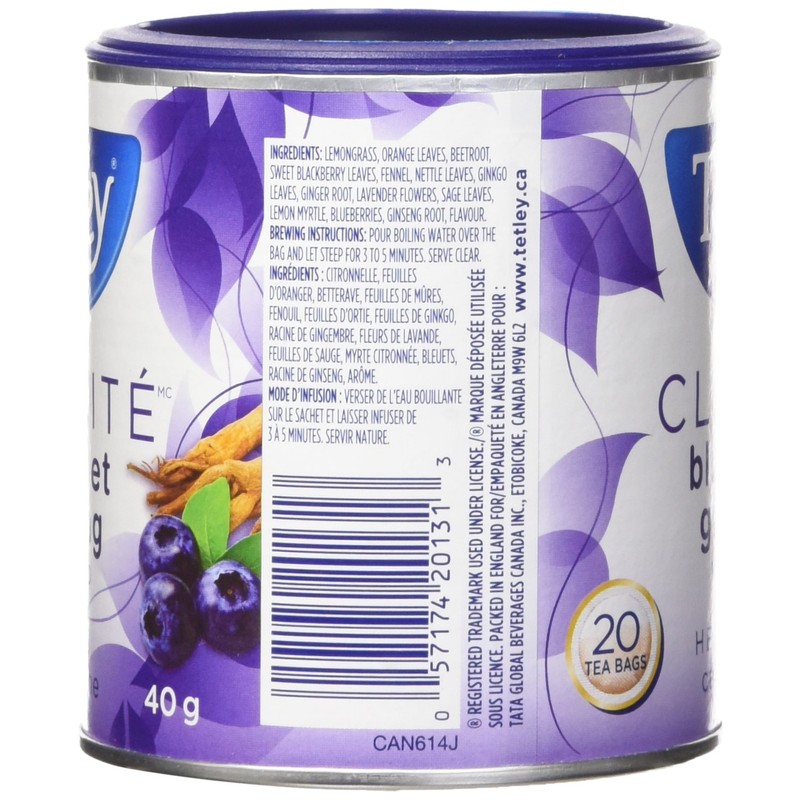 Tetley Tea Clarity (Blueberry Ginseng) Herbal Tea, 20-Count