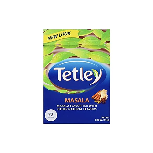 PRODUCT INFORMATION Tetley's premium tea is now selected and blended with Masala flavor, creating a truly enjoyable cup of tea. Tetley's famous round tea bag has 2000 perforations to allow the full-bodied flavor to flow through. It is also a natural source of antioxidants. So go ahead and enjoy a superior cup of masala tea and discover the heavently taste that Tetley has to offer. PRODUCT SPECIFICATIONS Net Wt. 5.08oz (144g) - 72 Tea BagsProduct of EnglandPackaging: BoxProduct Type: Teas Ingredients:Black Tea, Natural Flavors.